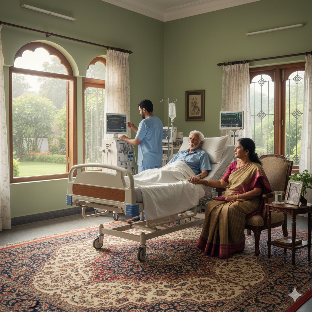 Complete home-based intensive care with advanced medical equipment, monitoring systems, and dedicated trained staff.